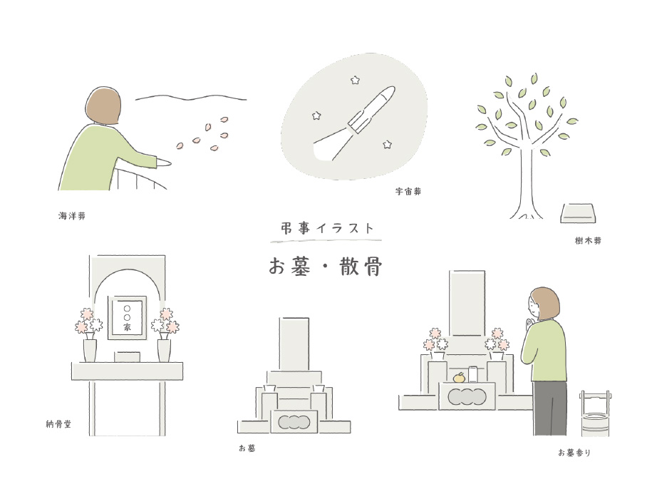 提携する葬儀業者もございます。海への散骨や合祀塔への納骨など弊所を通していくつかのプランをご案内できます。