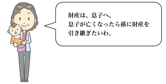 通常、自分が亡くなり自分の相続財産を息子が相続した場合、その後、息子が亡くなった場合、息子の相続財産は息子の配偶者と息子の子供が相続することになります。息子がどう遺言を書くかは息子の自由であり、口出しはできません。